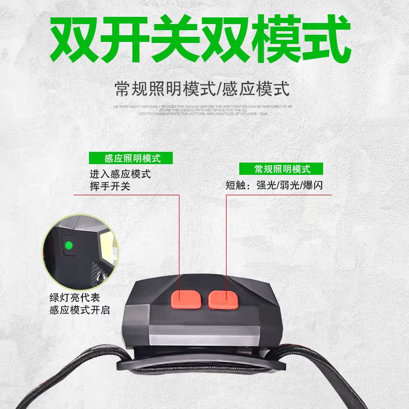 Charge Induction Headlights Outdoor Bright Light Headlights Fishing Bait Light Red Light Beekeeping Mosquito Repellent Lithium Battery Headlights