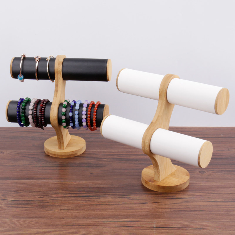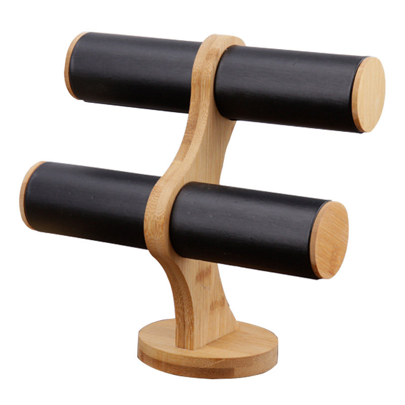 Black bamboo and wood two-layer bracelet rack White bamboo and wood two-layer bracelet rack