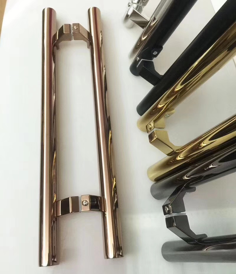 With frame glass door inclined foot handle thickened stainless steel horseshoe feet handle bright light black titanium alloy rose gold yellow titanium alloy