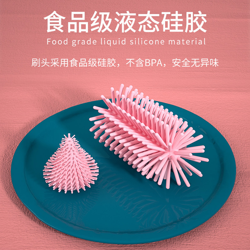 (Mickey Bear) silicone bottle brush nipple brush cleaning brush set baby 360 degree rotating silicone brush