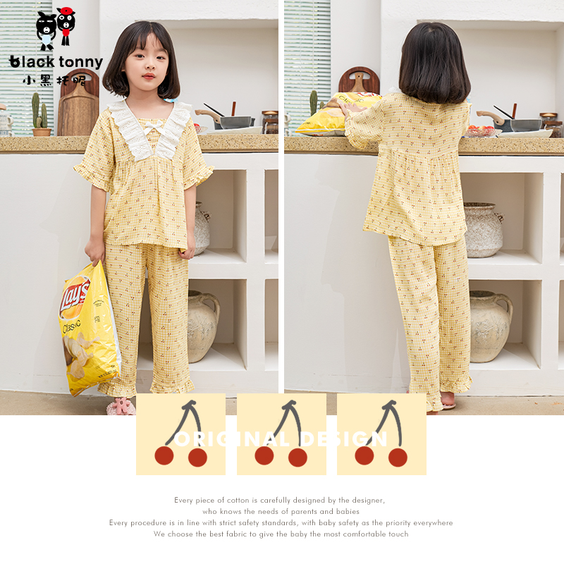 Small Black Trust Girl Child Girl Summer Short Sleeve Pyjamas Children's Thin Family Home Clothes Little Girl Princess Air Conditioning Suit Suit