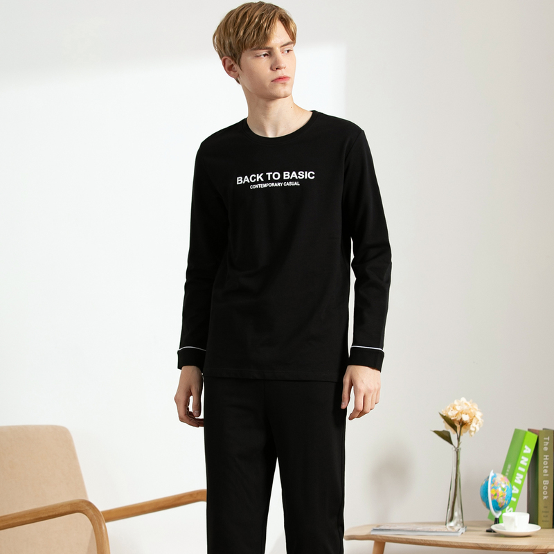 Jeanswest men's spring and autumn youth simple and comfortable round neck long-sleeved printed casual sports suit
