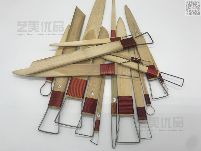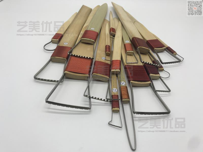 Toothed bamboo handle scraper sculpture tool clay knife sculpture knife pottery knife modeling knife set