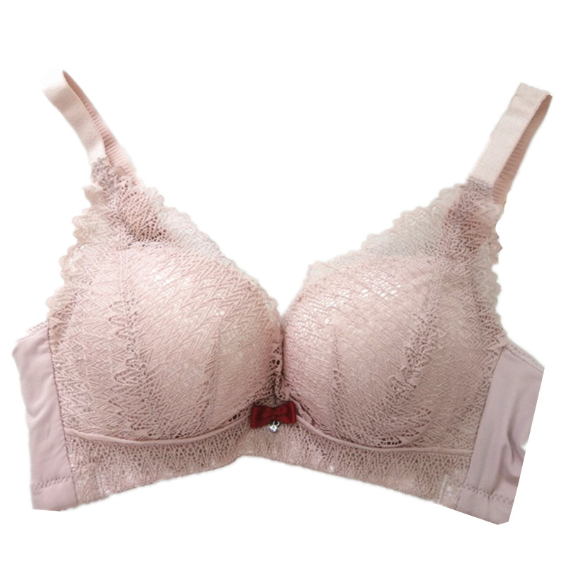 Soft thick no steel ring small chest flat chest underwear women's lace thickened gathered bra adjustment type closed breast bra