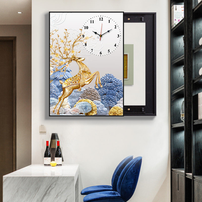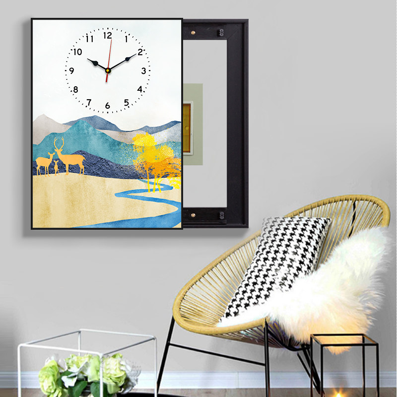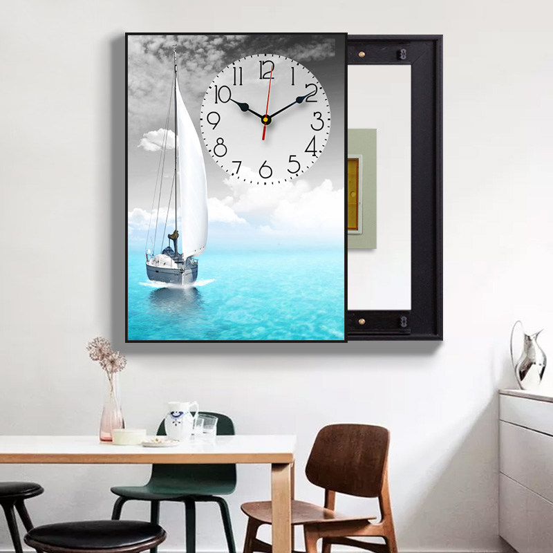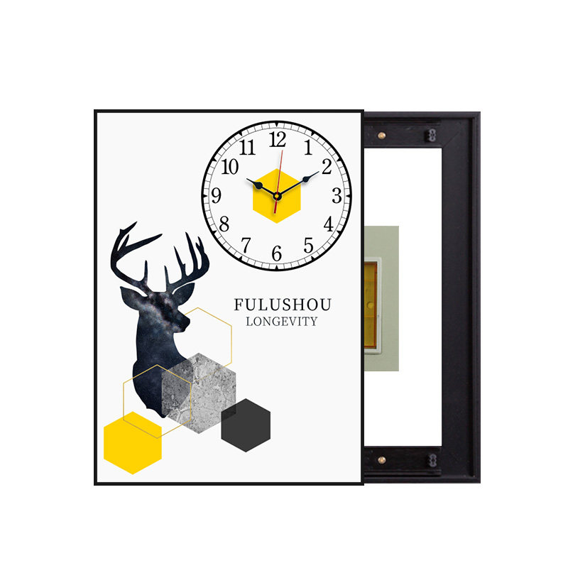 Restaurant meter box decorative painting with clock Modern simple occlusion vertical hanging painting free perforation Nordic creative fresco