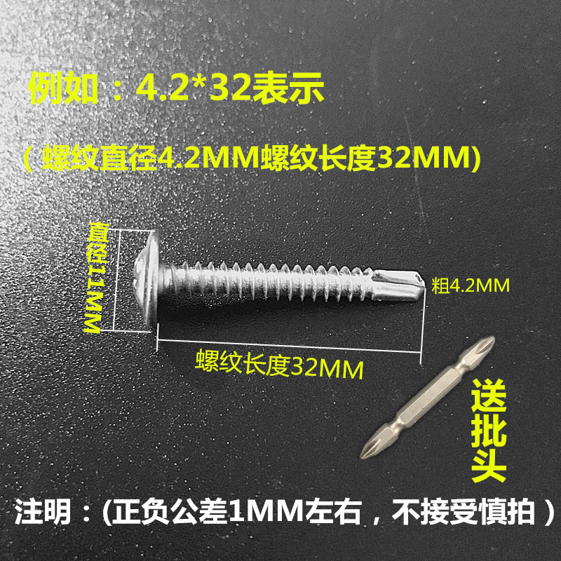 Large flat head drill tail screw self-tapping self-drilling cross drill tail Chinese wire drill angle iron square tube color steel tile iron steel plate