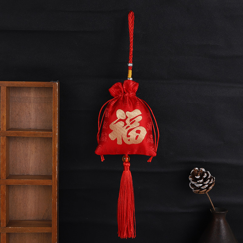 End of the Dragon Boat Festival Fragrant Bag of Traditional Chinese Medicine Perfume Bag Pendant Fu Character Ping-an Perfume Bag Car Pendant Agrass Double-sided Embroidered Wardrobe fragrant bag