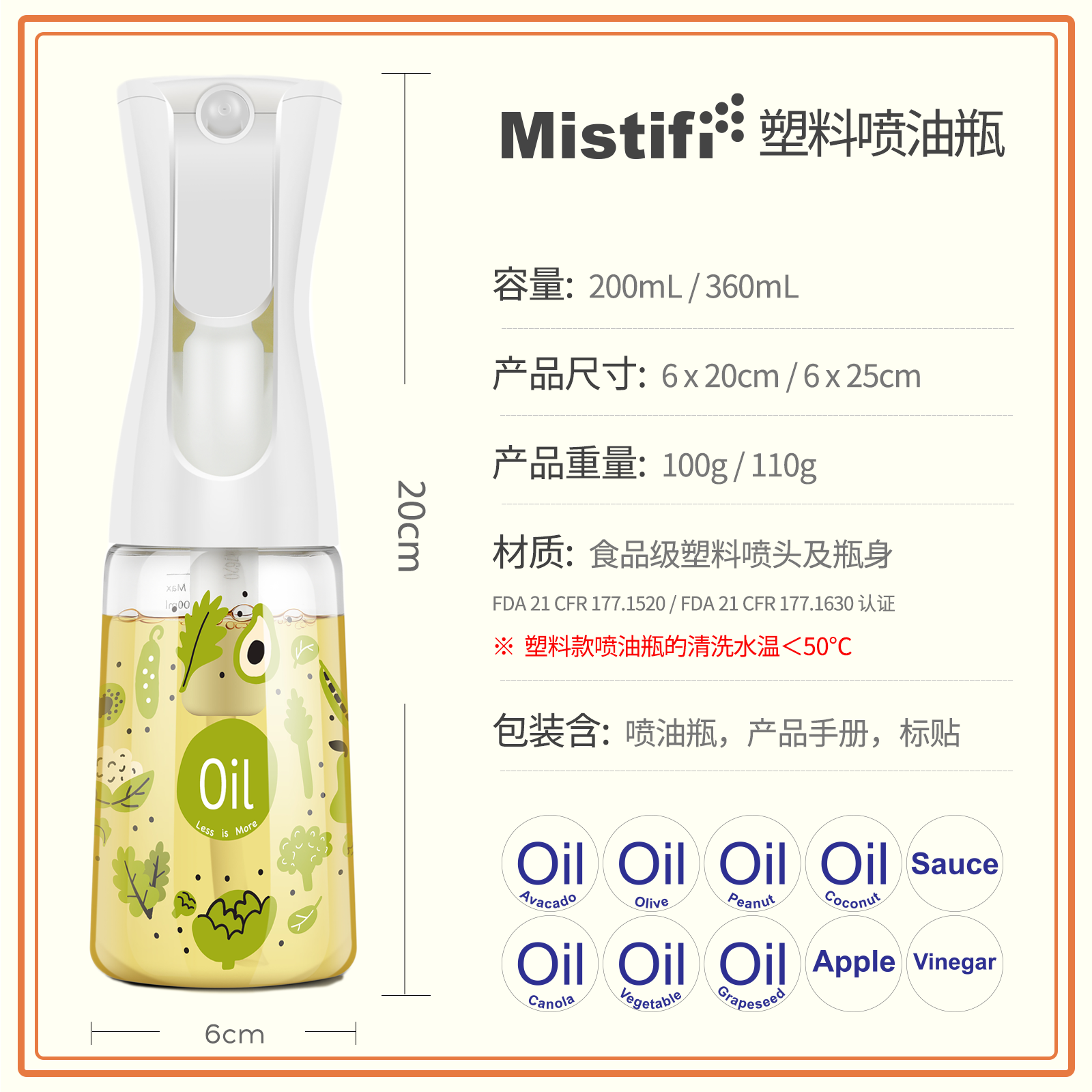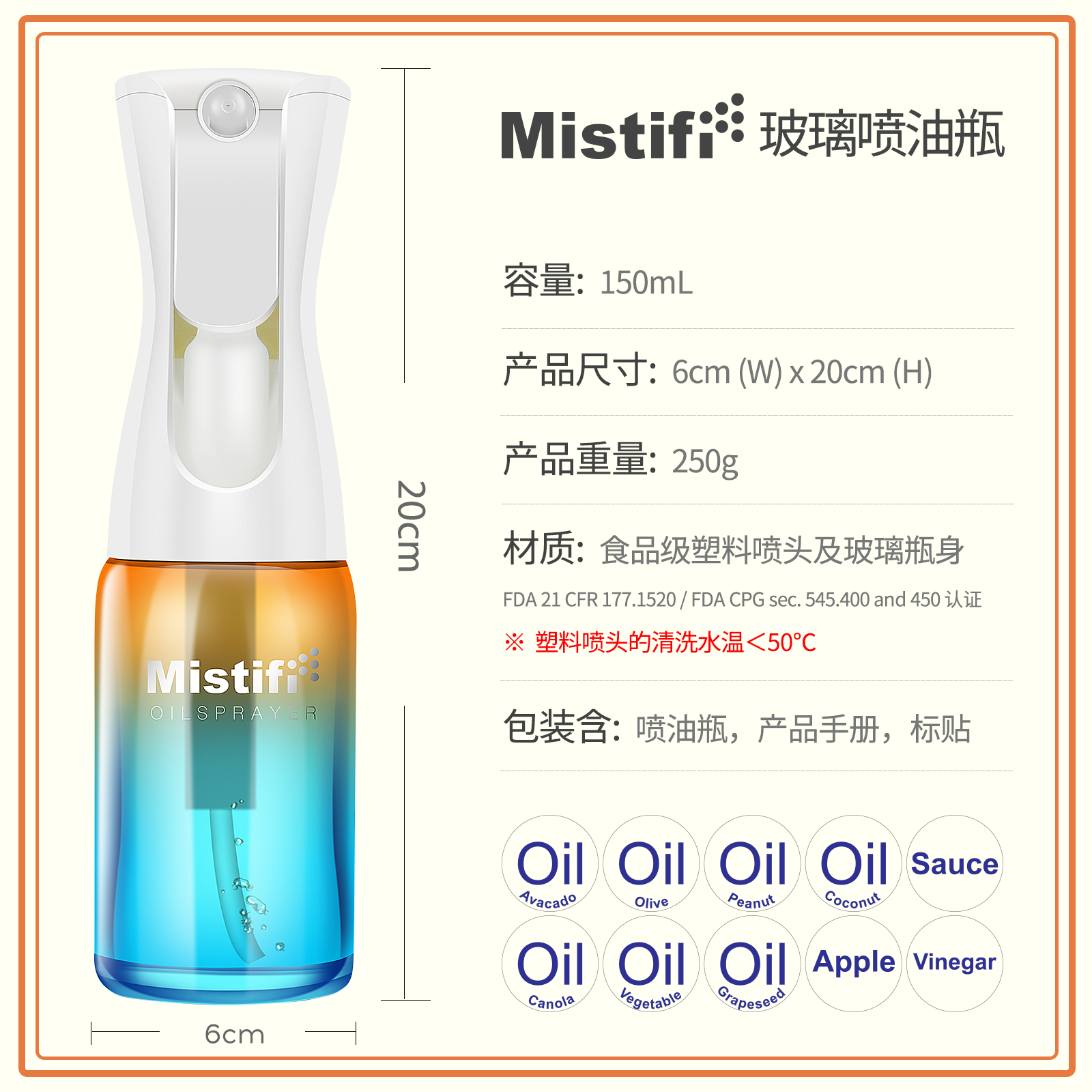 Mistifi oil jug Dutch patent 2 generation high pressure atomization spray bottle kitchen edible olive oil glass spray bottle