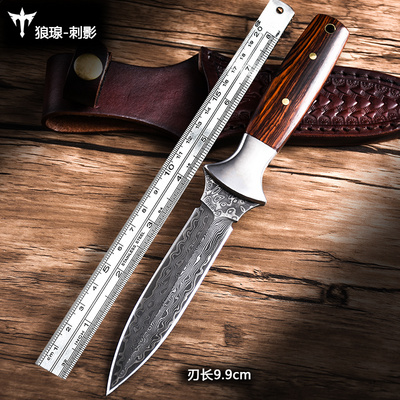 Outdoor calcined knife with sharp knife self-defense double front cold weapon saber tritium gas Damascus steel straight knife