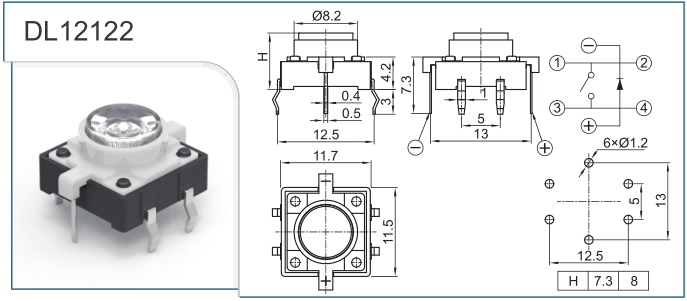 Light switch with light button 12 * 12 * 7 3 transparent handle with lamp touch button environmentally-friendly reset switch