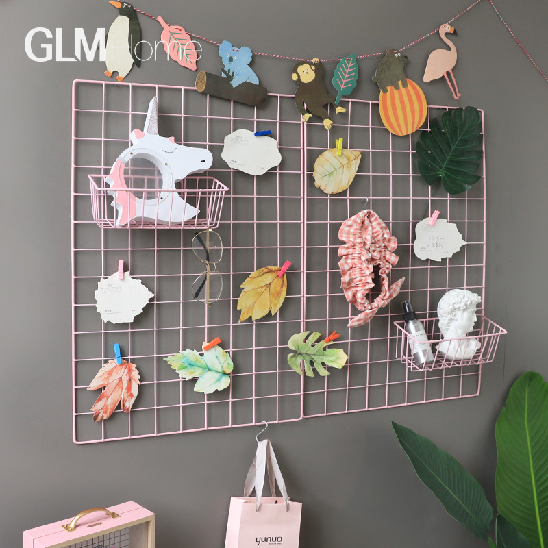 ins wind grid photo wall shelf photo frame hanging wall hanging wall free of punch mesh red bedroom room arranged iron frame decoration-Taobao