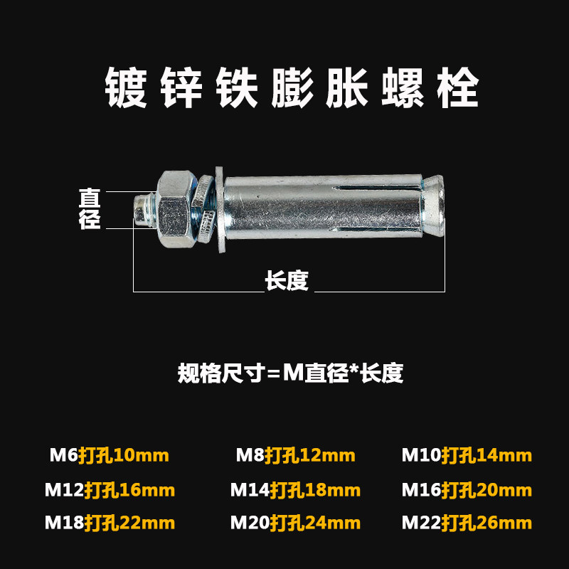 Expansion screw GB 8mm galvanized iron pull explosion suspended ceiling expansion bolt 6mm explosion anchor bolt 10mm full box expansion screw