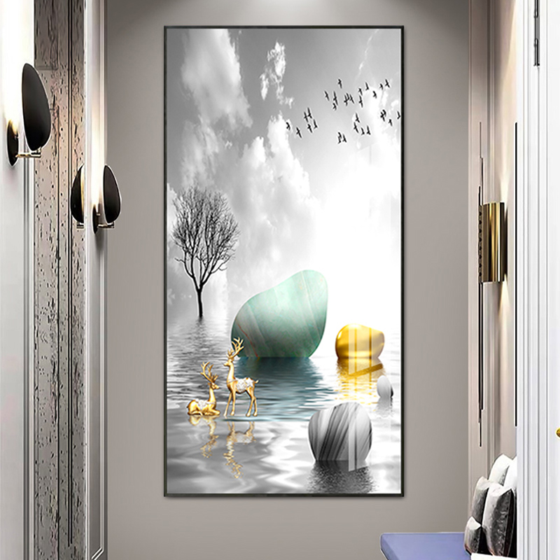 Entrance porch decorative painting corridor aisle end painting modern minimalist vertical atmospheric wall mural light luxury Nordic