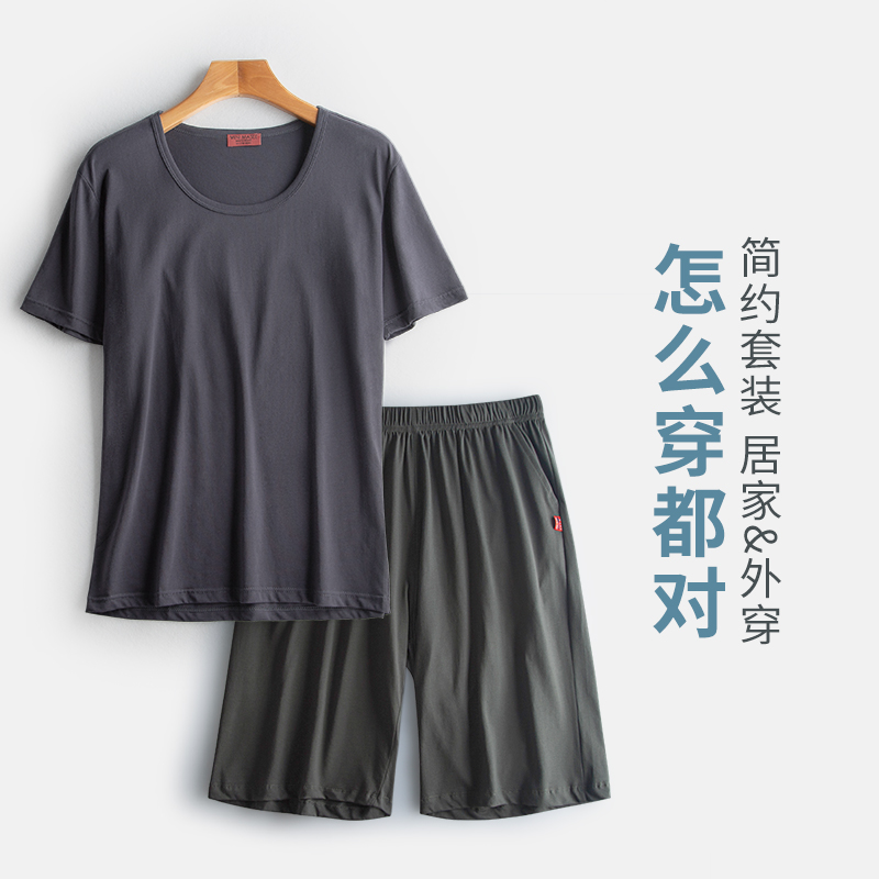 Summer men brief pure cotton short sleeves T-shirt 50% PANTS SUIT ALL COTTON CASUAL PYJAMAS Home Loose can be worn outside