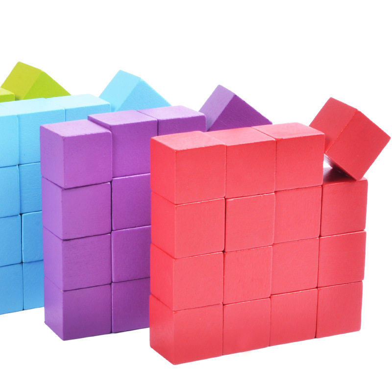 Versatile square volume wood 100 grains of colored wood puzzle children's toys to build teaching aids for men and women squares assembly