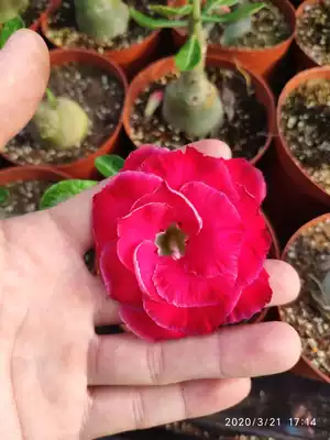Meet the rose edge double-petal desert rose New Red Dragon] Appreciation of flowers and roots of succulents