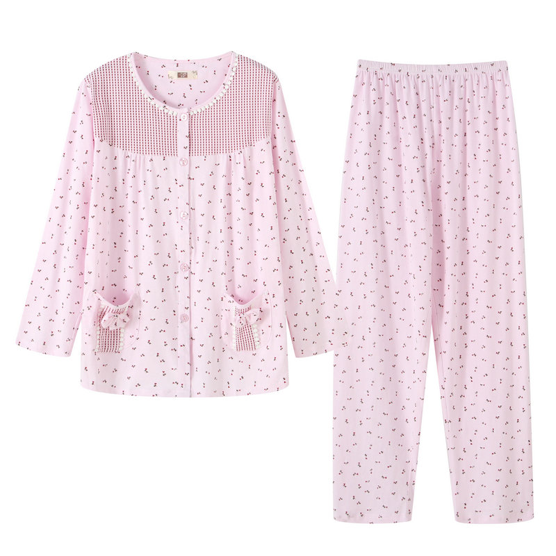 2022 summer thin cotton long-sleeved women's pajamas middle-aged and elderly collarless women's pajamas cardigan middle-aged women's pajamas set