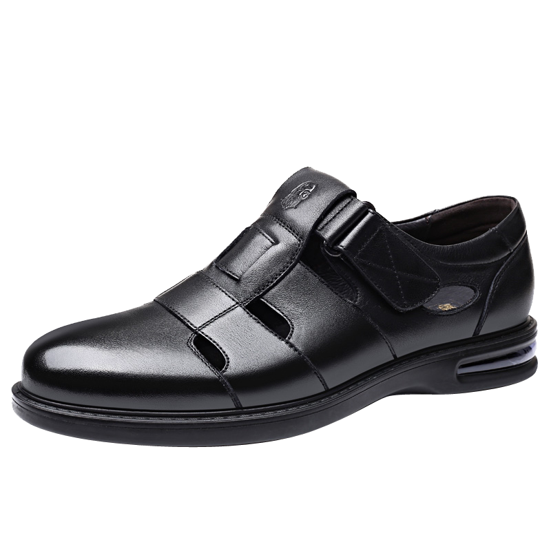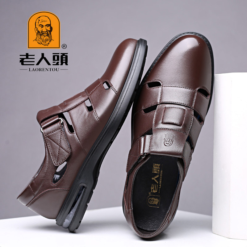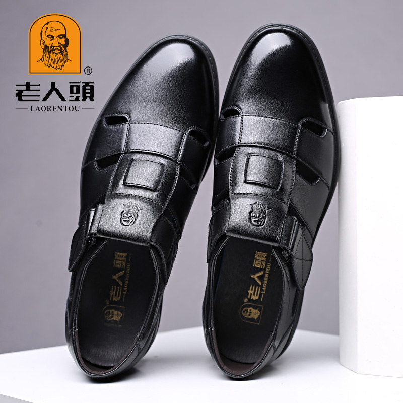Old man's head sandal shoes men's leather breathable hollow hole business casual soft bottom large size middle-aged and elderly dad shoes