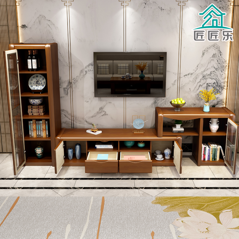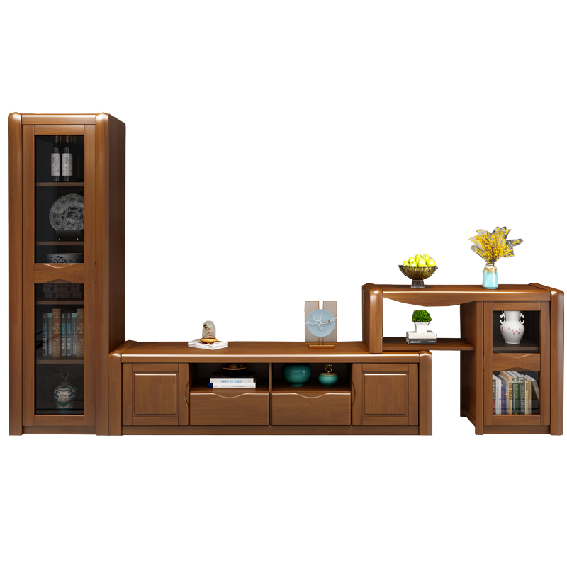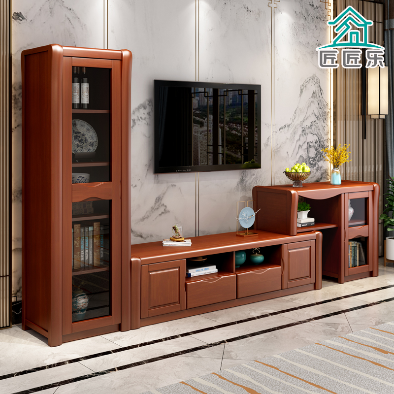Chinese solid wood TV cabinet combination telescopic wall cabinet living room multifunctional background cabinet coffee table floor cabinet oak video cabinet