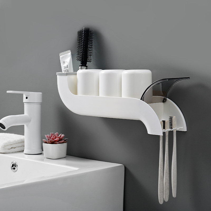 Punch-free draining toothbrush holder wall-mounted mouthwash cup holder bathroom wash-up toothpaste shelve hanging wall style toothbrushing cup