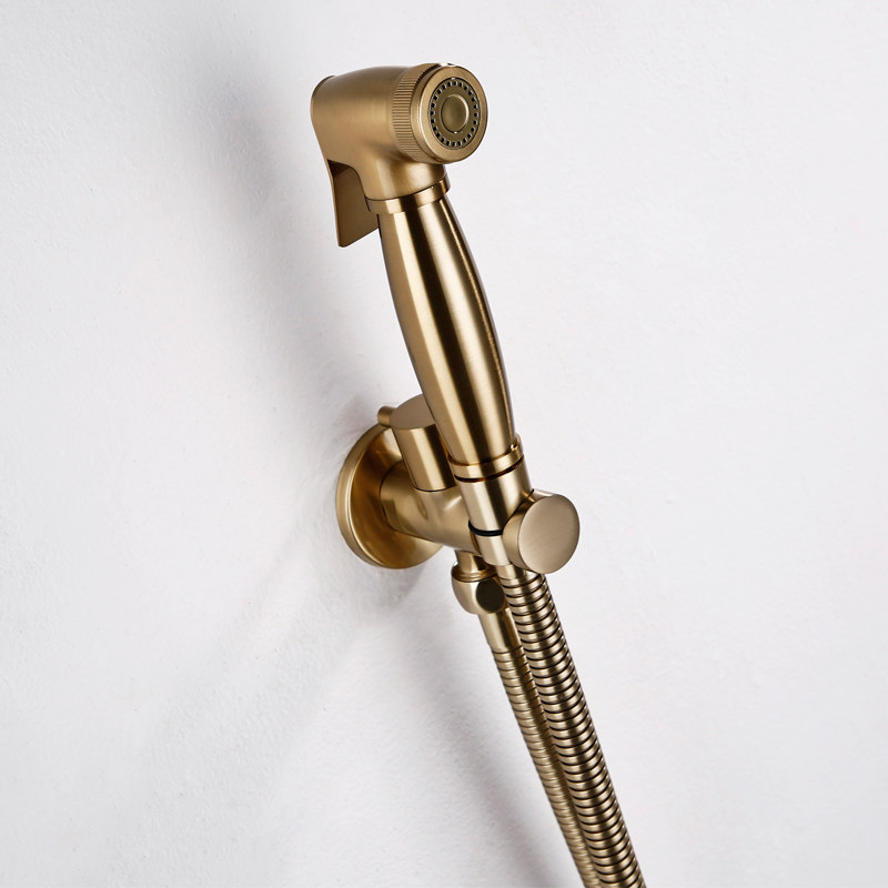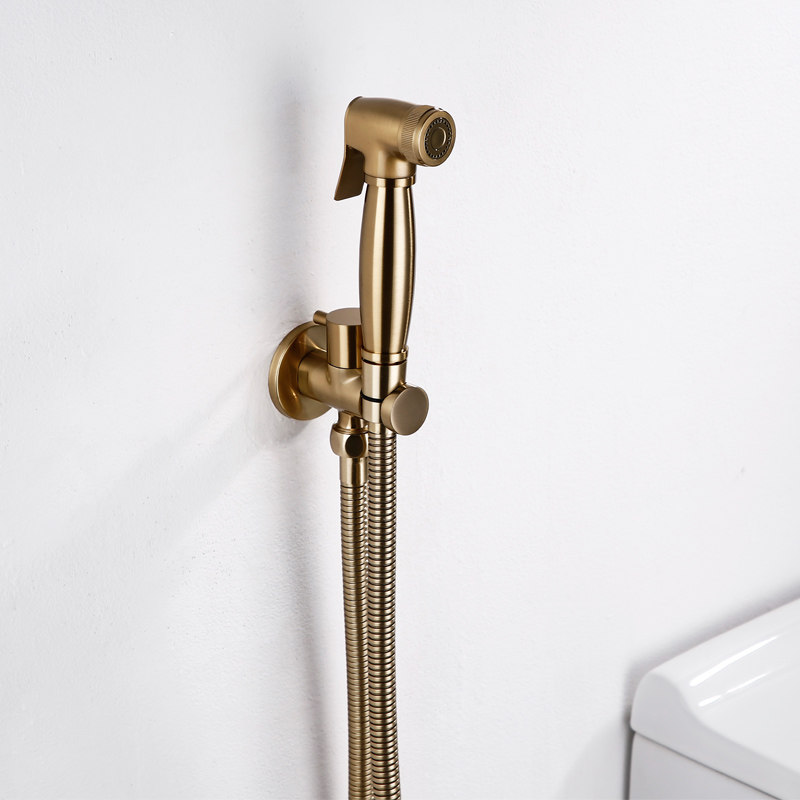 LFSTN all-copper brushed gold toilet spray gun high-pressure nozzle flushing powder room bathroom toilet companion woman washer