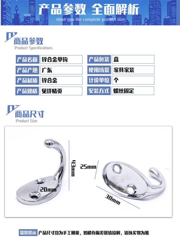 Hardware Zinc Alloy Single hook Student bag hook Bathroom Kitchen door behind cloakhook toilet hook hook hook hook hook hook