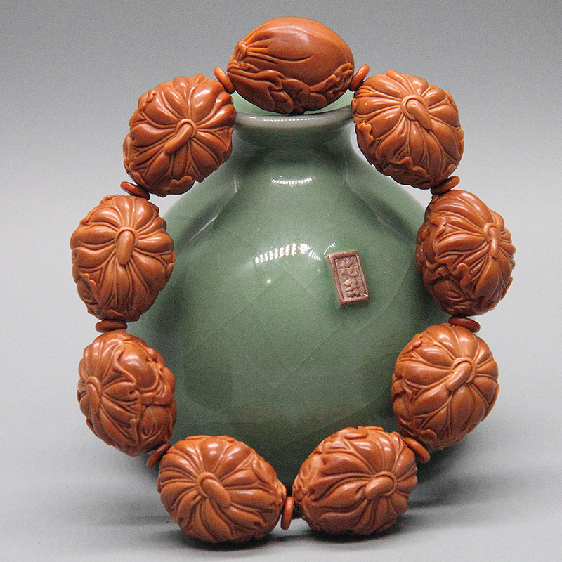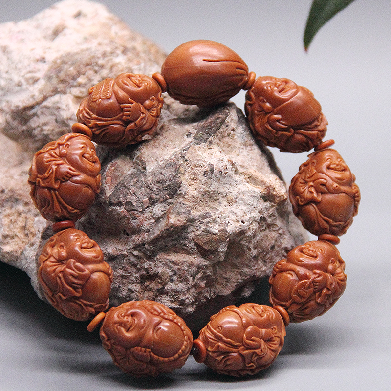 Olive core bracelet eight treasure lotus leaf Maitreya Buddha Zhoushan Su Gong pure hand carved men's and women's large seed wen play bracelet