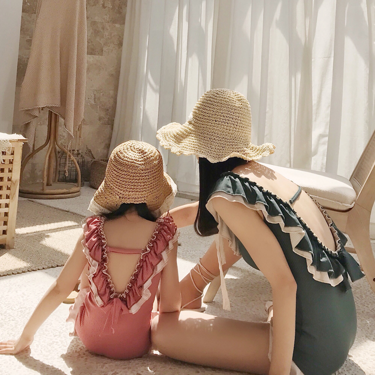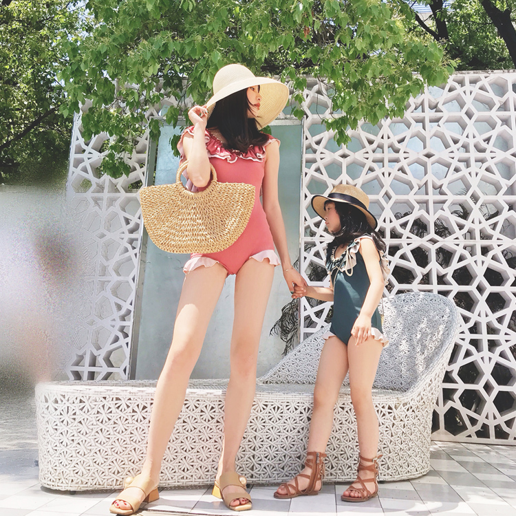 New Korean parent-child swimsuit Mother-daughter jumpsuit Girl girl beautiful back cute children's swimsuit beach swimsuit