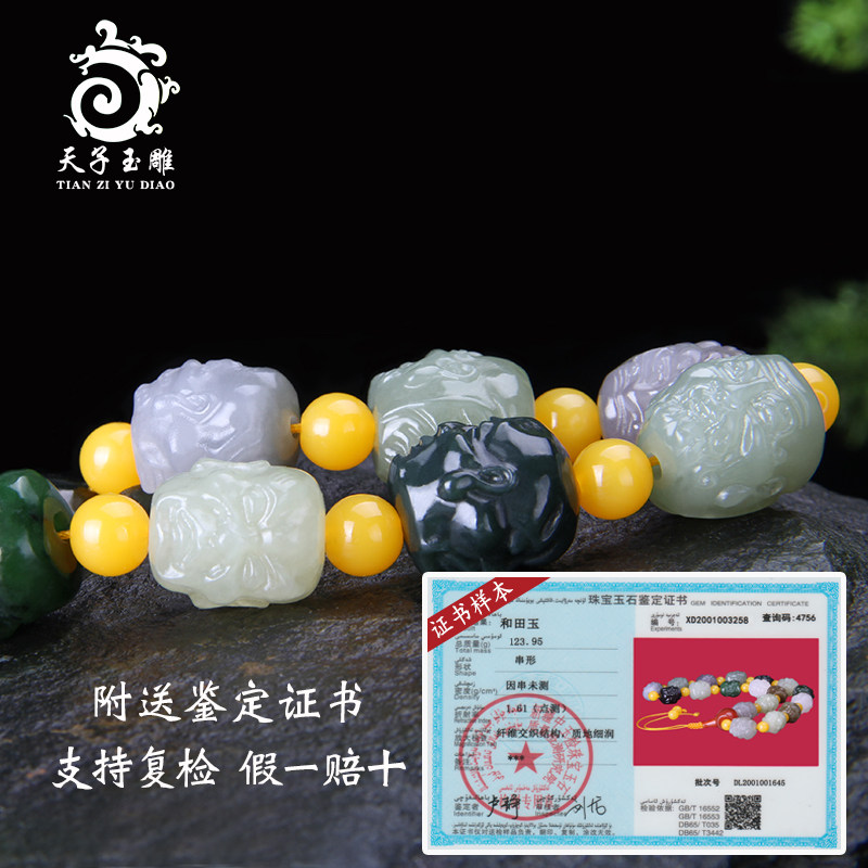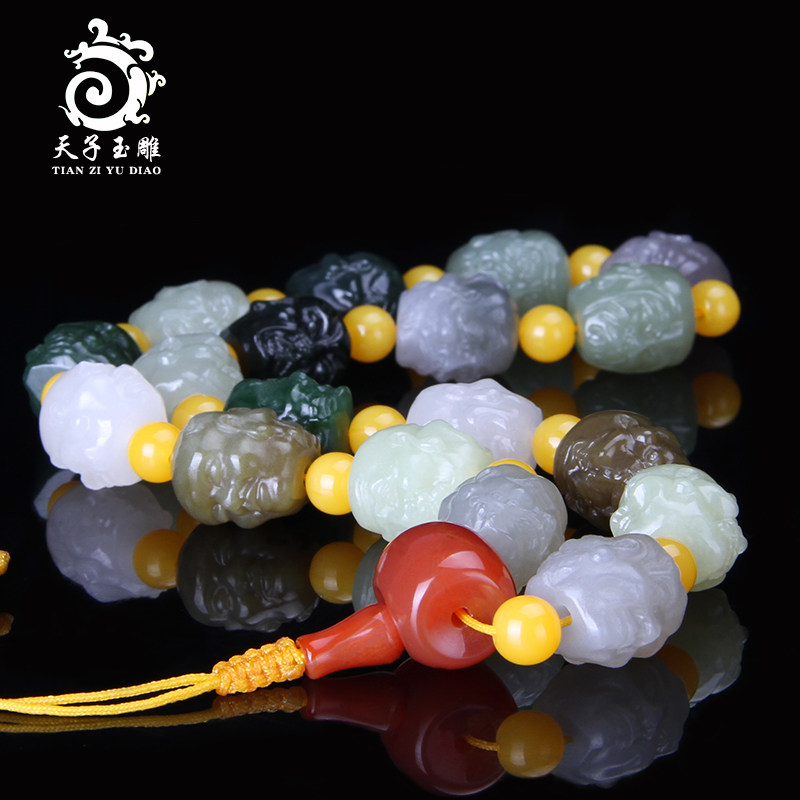 The emperor jade carving and tian jade 18 arhat turbo hand string men's style old hang material jade jade jade beads Buddha bracelet