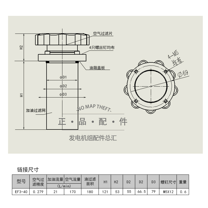 Fuel tank cap filter hydraulic fuel tank filling port diesel generator set with filter filling port EF3-40