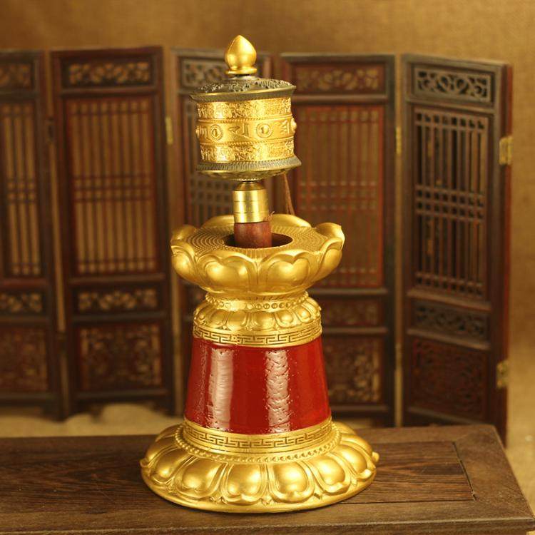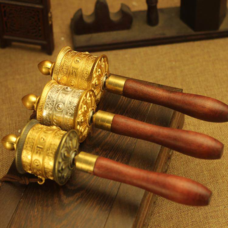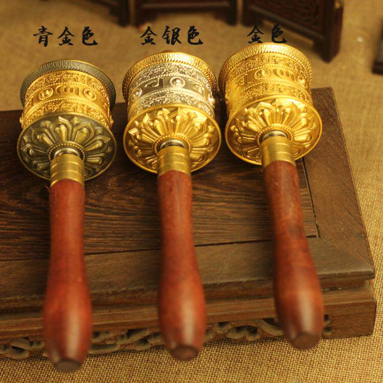 Alloy embossed hand-turned prayer wheel six-character mantra Daming mantra eight auspicious prayer wheel to pass tantra