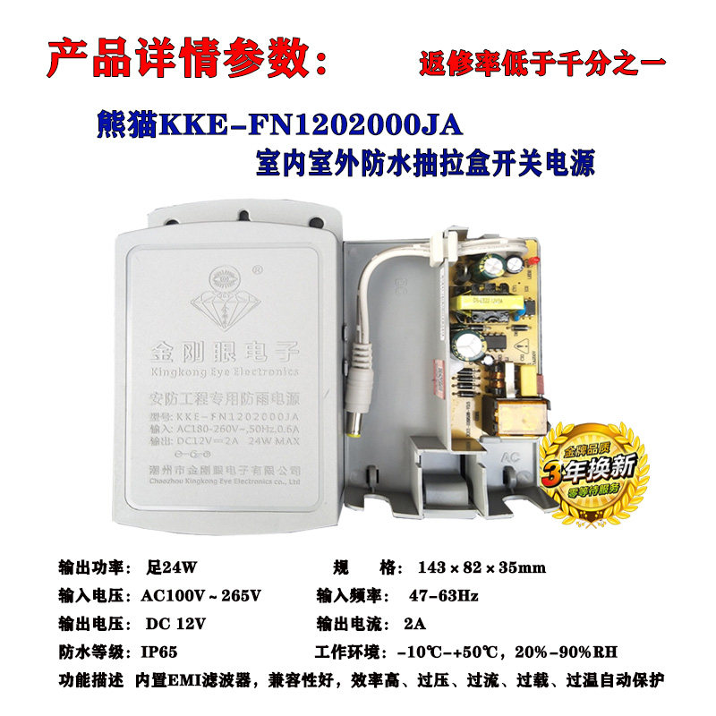 Original King Kong Eye Panda 12V2A24W Outdoor Waterproof Surveillance Camera Lightning Protection Power Adapter Flame Retardant