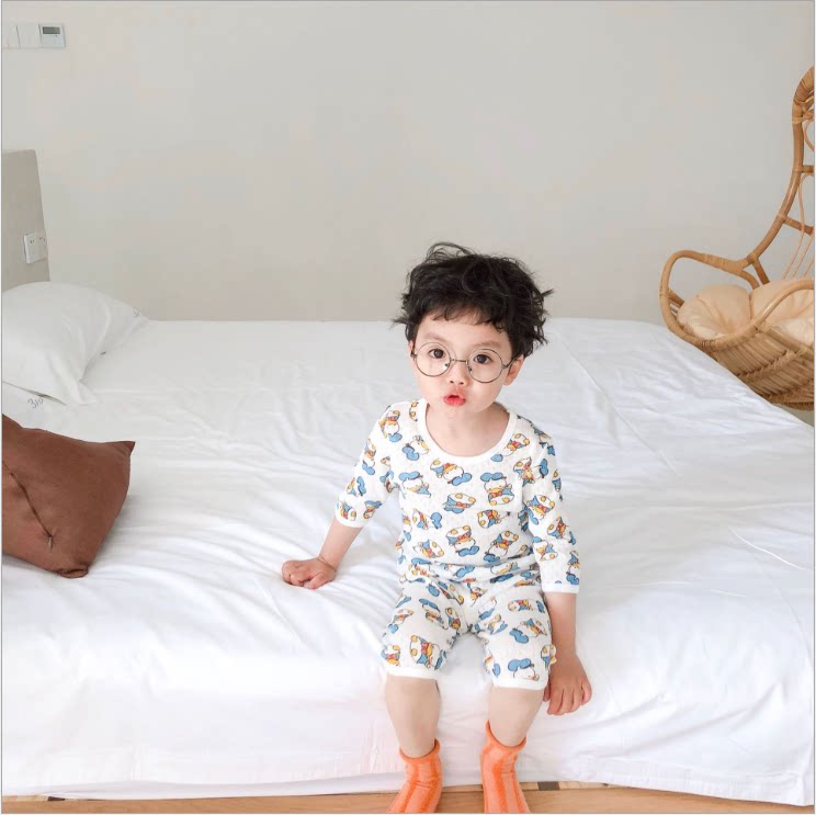 Broken Code Clearance Specials Children's Cotton Suits Summer Home Boys and Girls Mesh Cropped Sleeves Cropped Pants