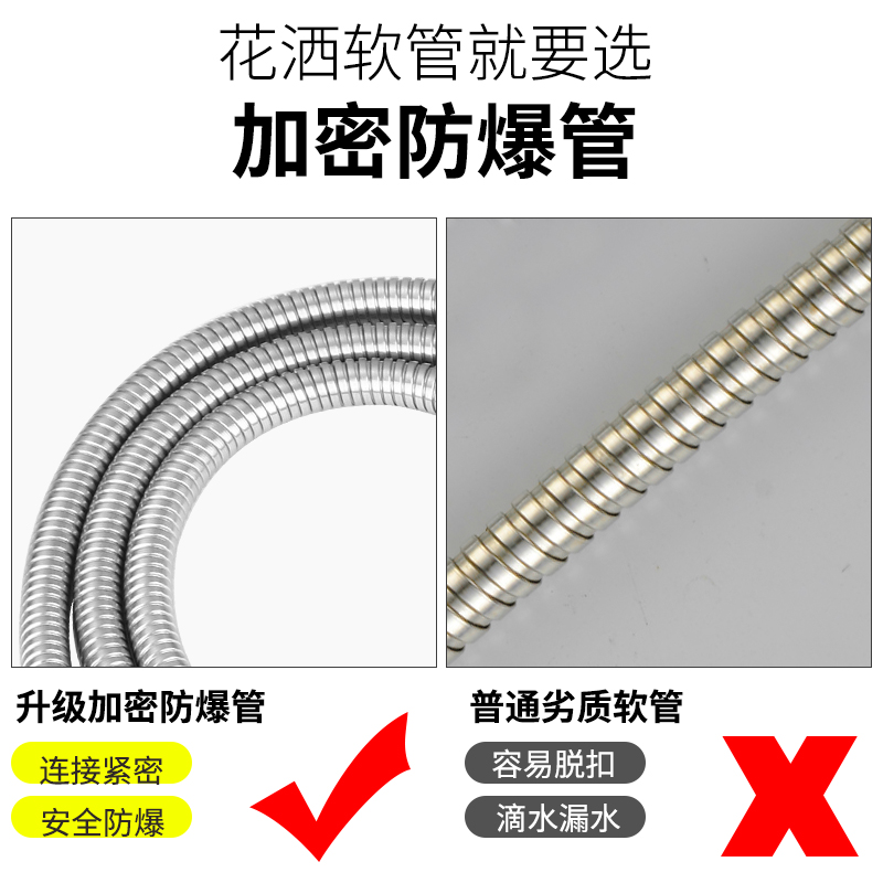 304 stainless steel shower pipe hand-held shower head explosion-proof pipe bathroom water heater shower head inlet hose