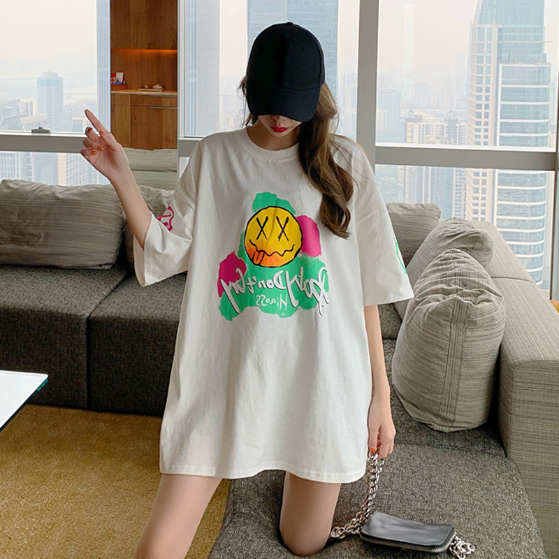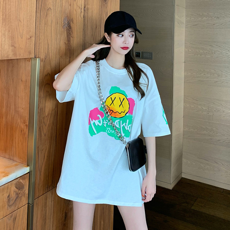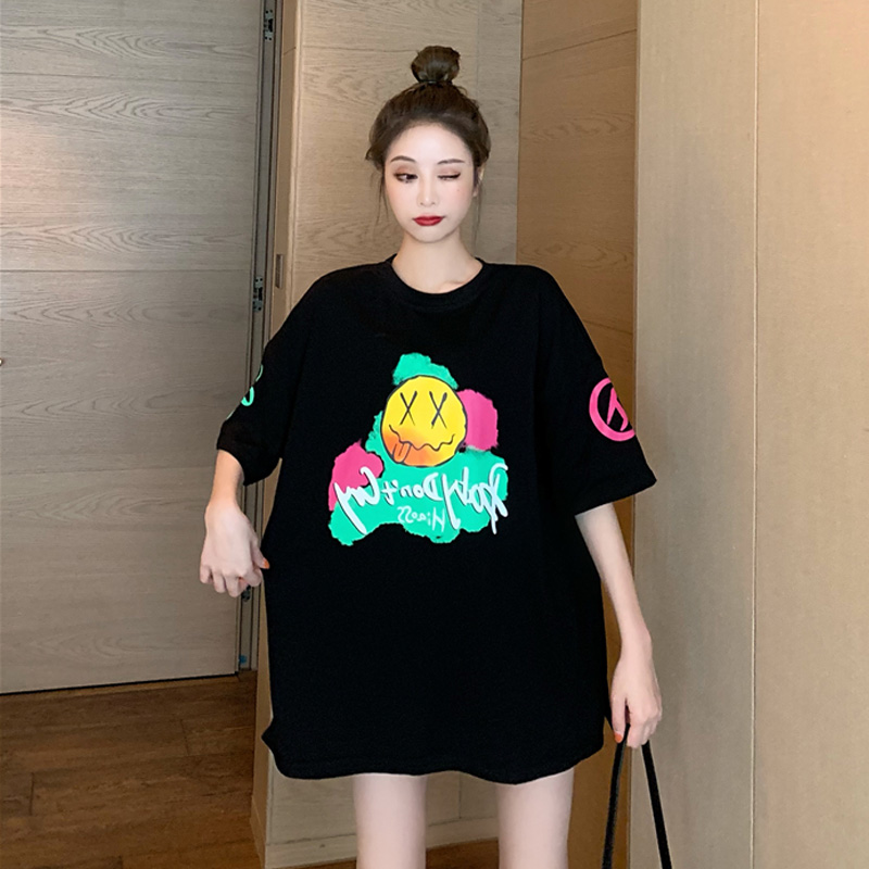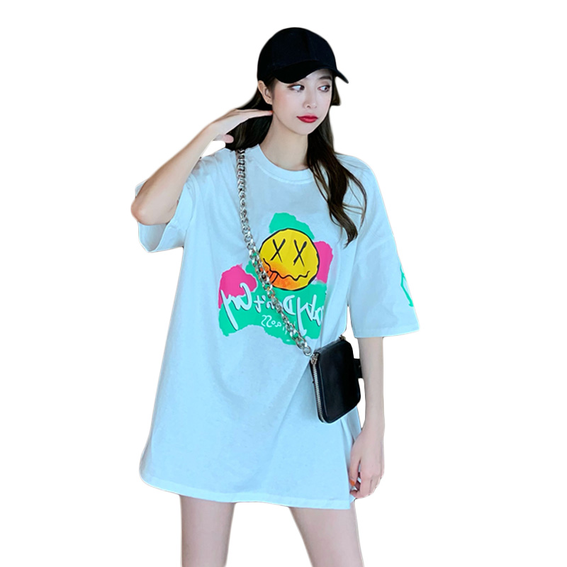 Short sleeve T-shirt woman 2020 Summer new Lazy Loose Medium Long Version Cartoon Printed Half Sleeve Blouse Large Size Clothes