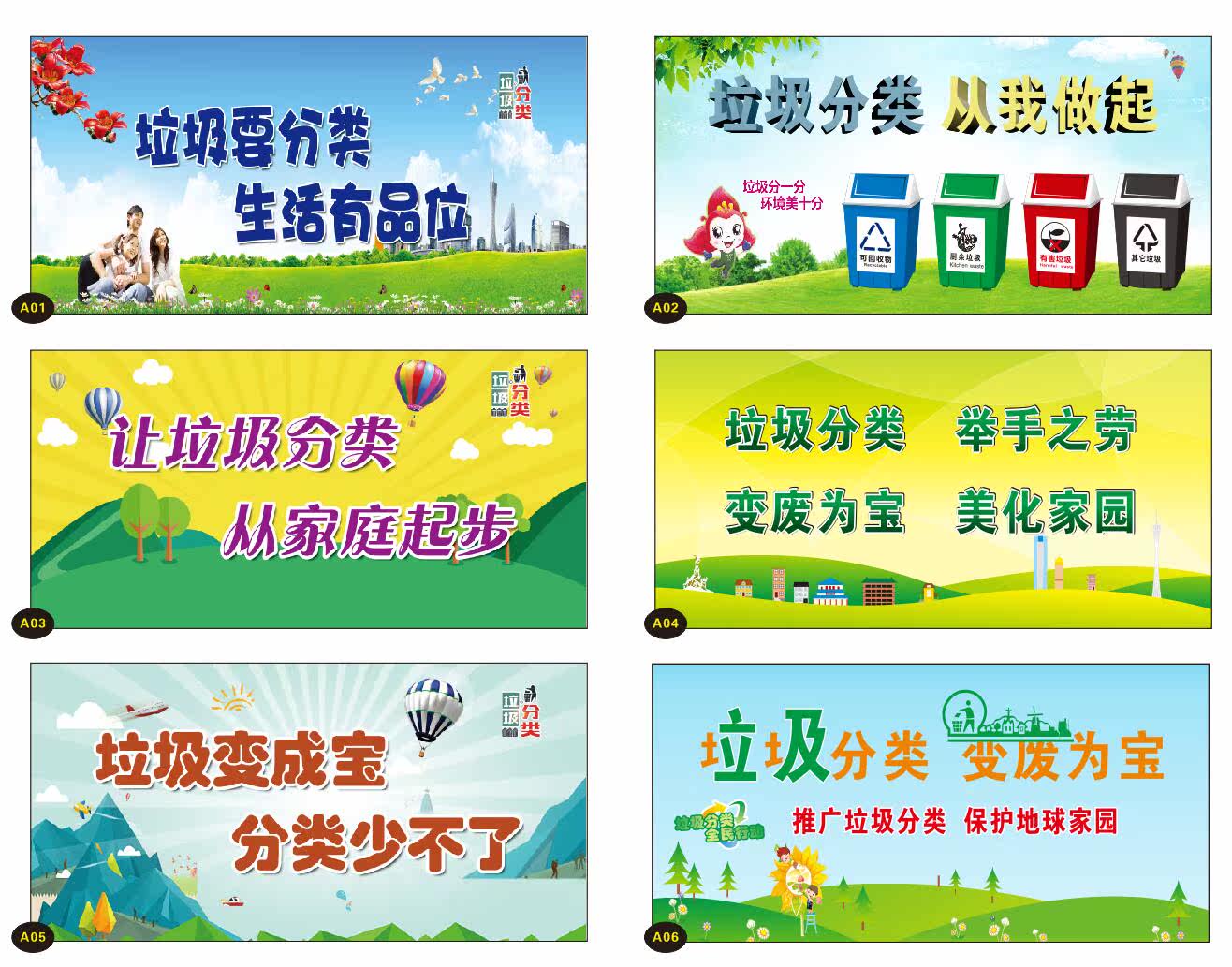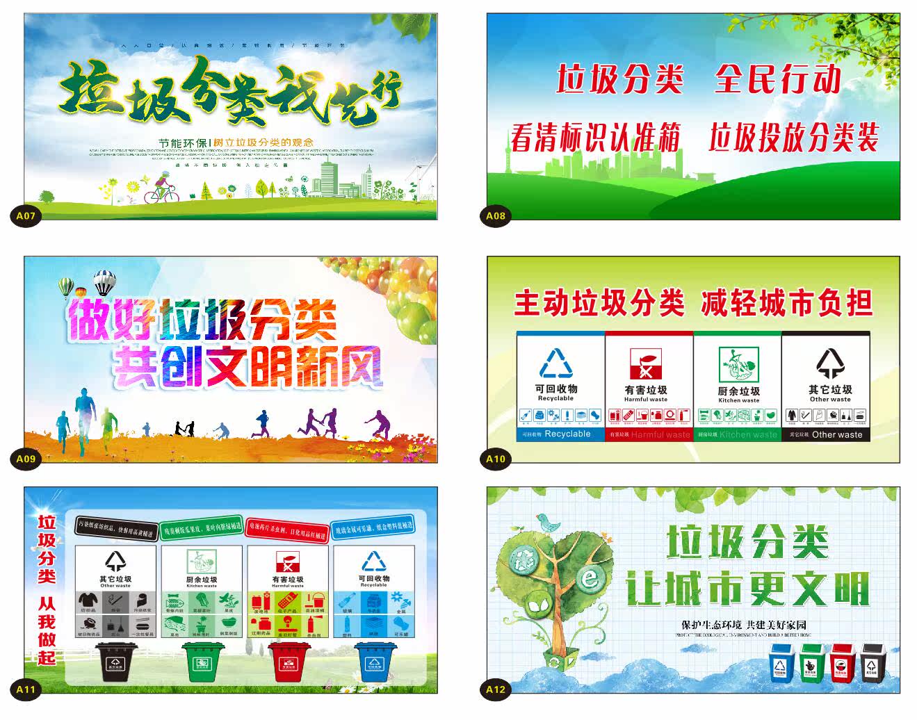 Customize the outdoor Cue Cards Snowfboard UV Garbage Sorting Wall Sticker Urban Rural Construction Slogan Sanitation Warning Signs