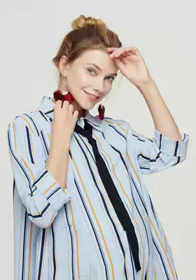 Pregnant women work work clothes spring dress loose large size pregnant women's striped professional shirt dress spring chiffon