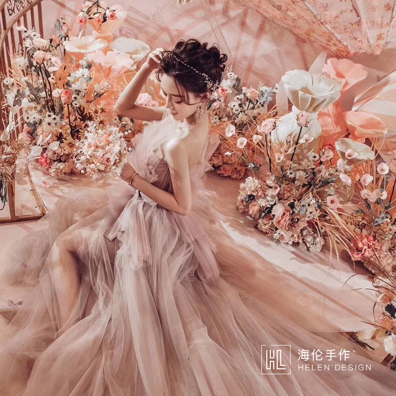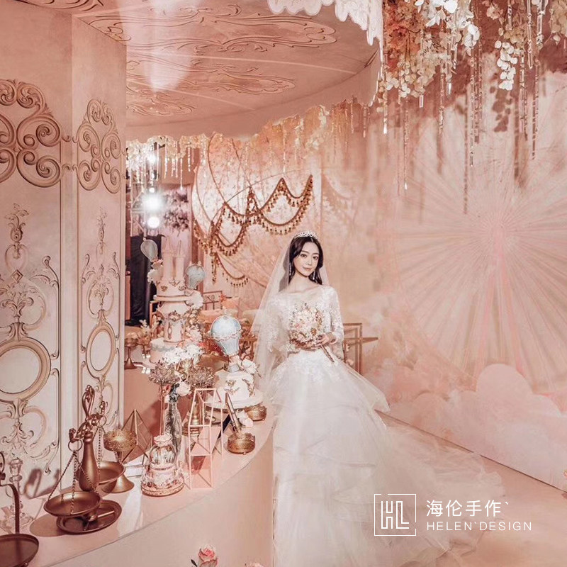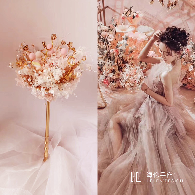 High-end custom hands with flower brides married Korean Champagne wedding flower rose gold-style scepter cane
