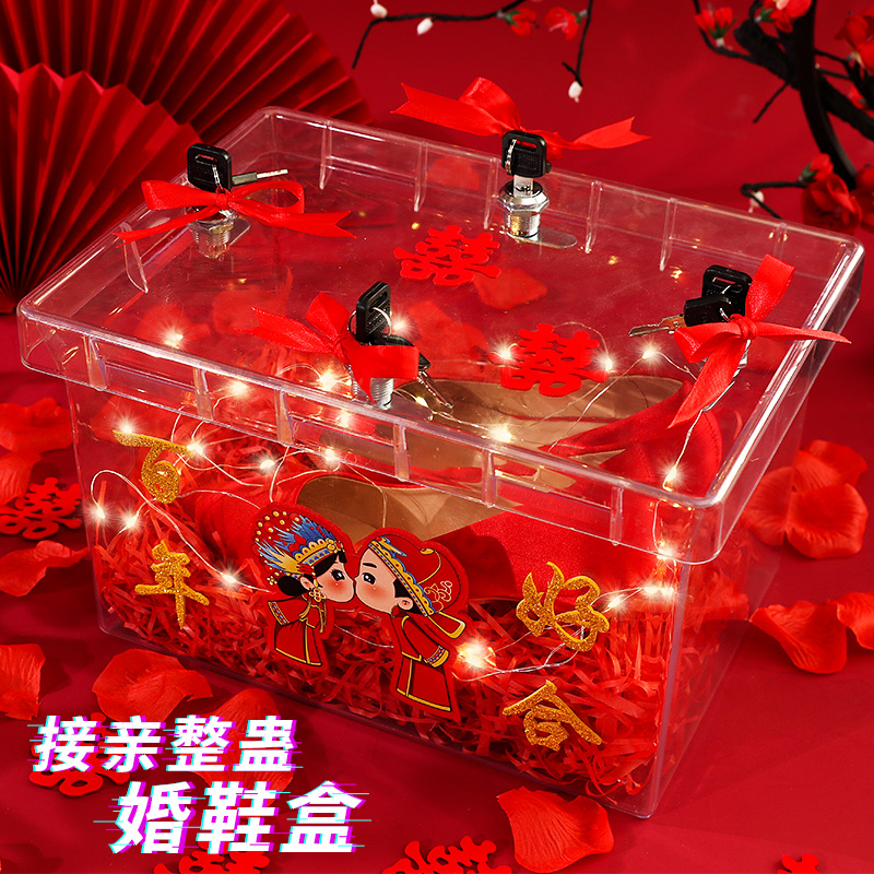 Knot wedding transparent Tibetan wedding shoes box with lock theorizer creative wedding items to pick up the game whole demagogic groom props-Taobao