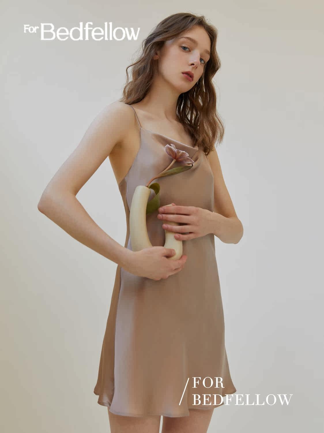 forbedfellow silk pajamas women can wear suspenders nightdress French style high-end swing collar sexy home clothes