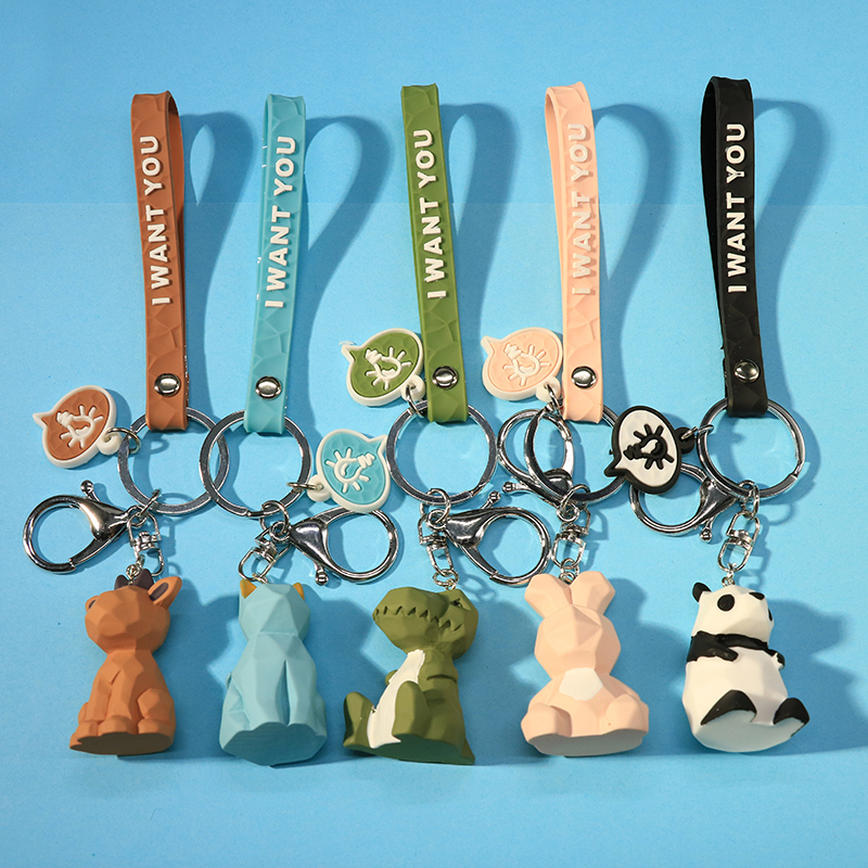Cute Geometric Animal Key Buckle Cartoon Dinosaur Paparazzi Car Keyring Chain Men's BAG PENDANT COUPLE-Taobao