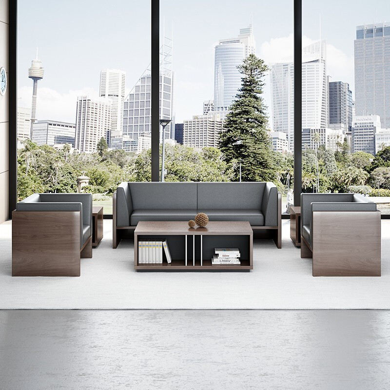 Modern Minimalist Office Sofa Business Hospitality guests in talks 4s shop Cow Leather Office Sofa Tea Table Combinations