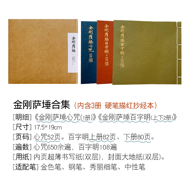Repentance and Obstacles Vajrasattva Hundred Characters Mingxin Mantra Hard Pen and Soft Pen and Paper Copy Sutras, Eliminate Karma, Complete Dharma Merit