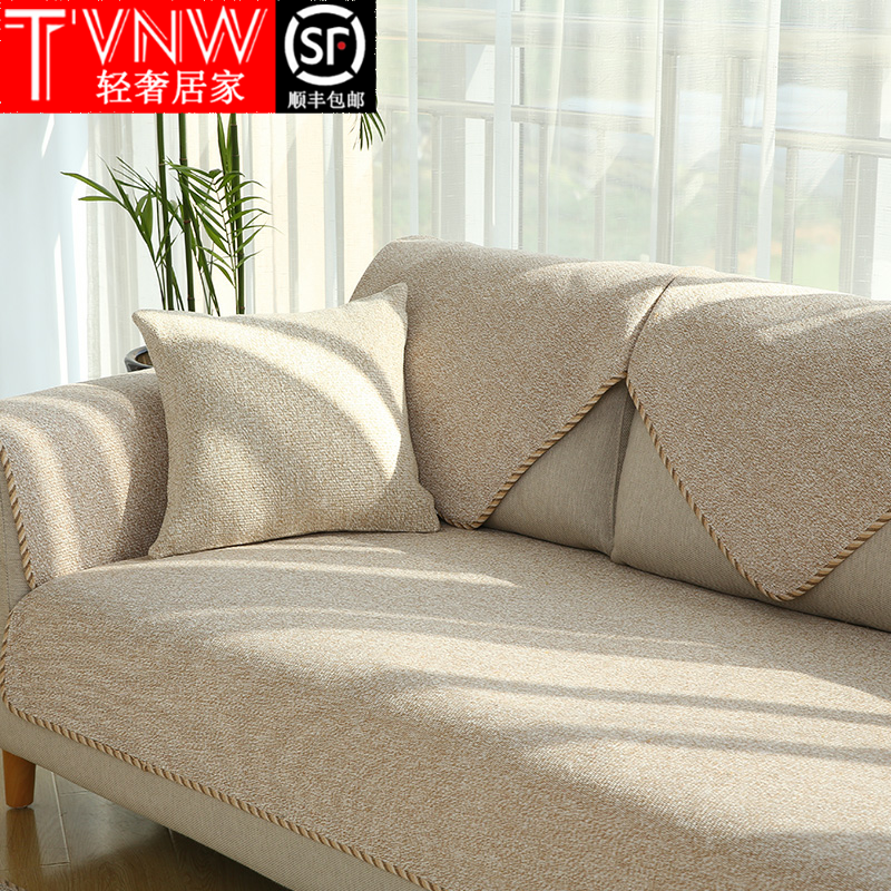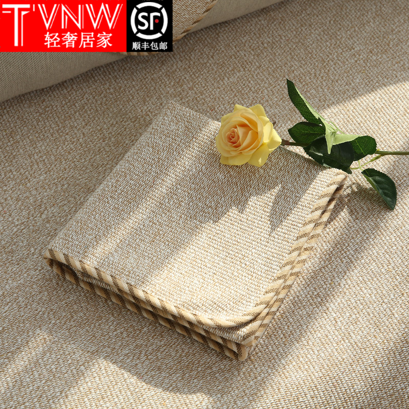 TVNW Nordic cotton and linen sofa cushion simple modern four seasons universal fabric solid wood three-person cushion non-slip cover towel