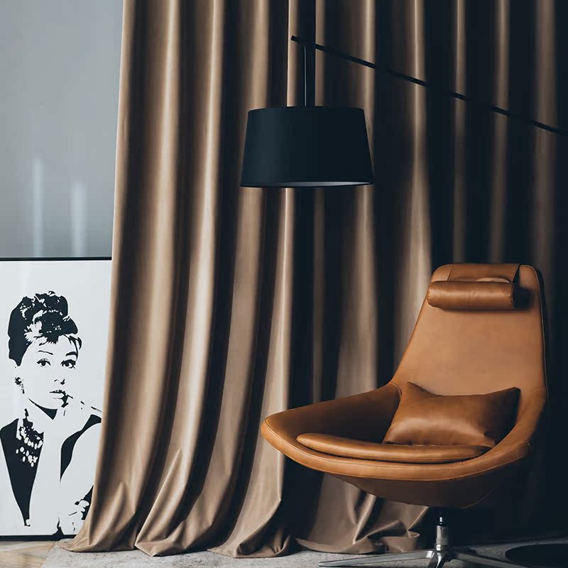 Fabric Easy Blue Sky Goose Down Curtains Brief Modern Living-room Bedroom Light Luxurious Fabric Nordic Style Velvet Curtains