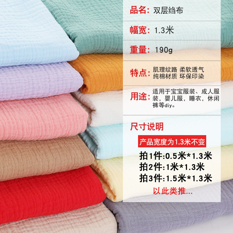 Pure cotton double-layer gauze fabric baby cotton yarn fabric dress skirt clothing texture crepe baby cotton cloth Hanfu