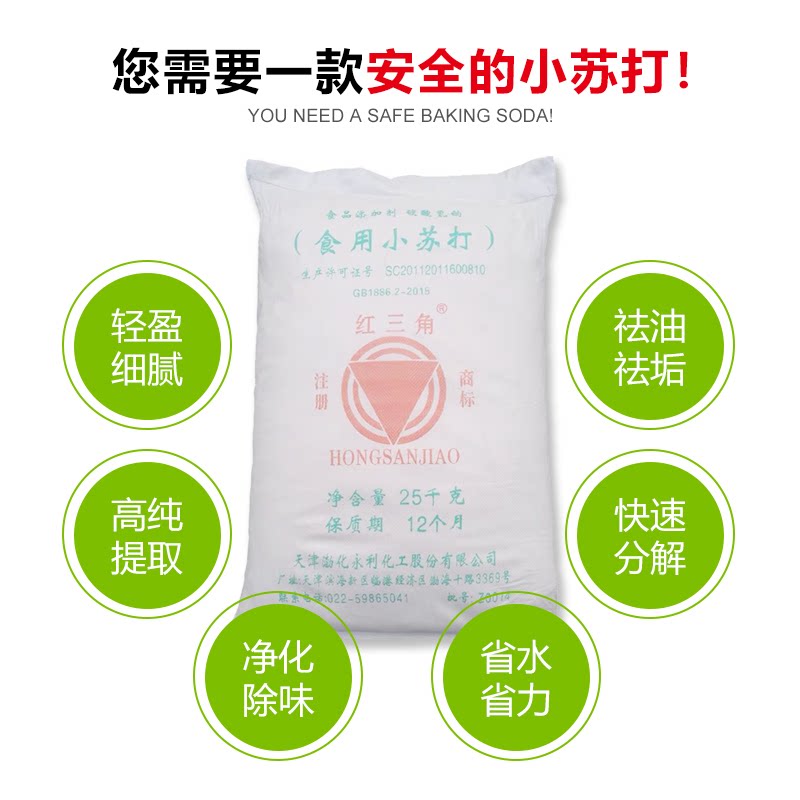 Food grade small soda powder cleaning and decontamination edible baking to make oil strips 50 catties Tianjin red triangle sodium bicarbonate