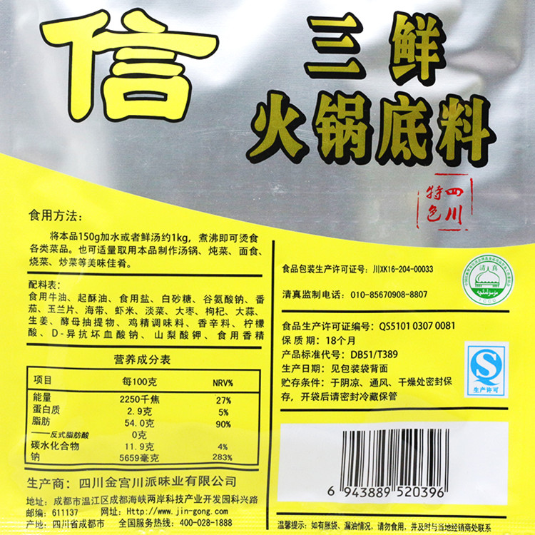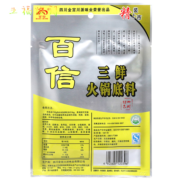 Baixin Sanxian Hot Pot Soup Base 150g*60 Bags Golden Palace Sanxian Series Mala Tang Commercial