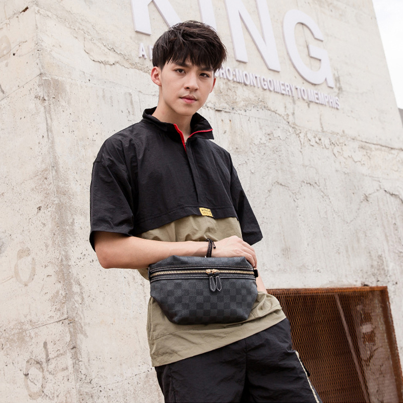 Svison's Star New Tide Card Chest Bag Men's Fashion Casual Purse Sloped Satchel Single Shoulder Bag Plaid small Shoulder Bag