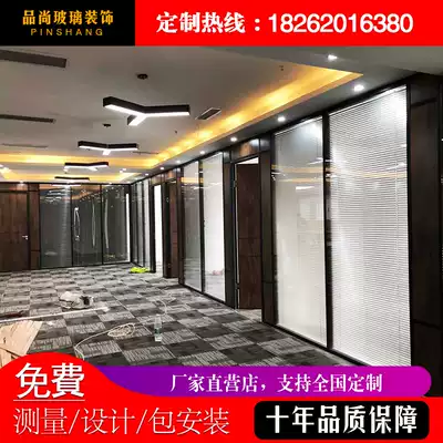 Custom office glass partition wall High partition profile Aluminum alloy tempered frosted glass double-layer built-in louvers
